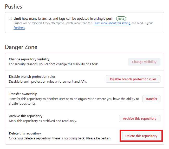 ▲ 맨 아래에 보면 Danger Zone 이 있다.