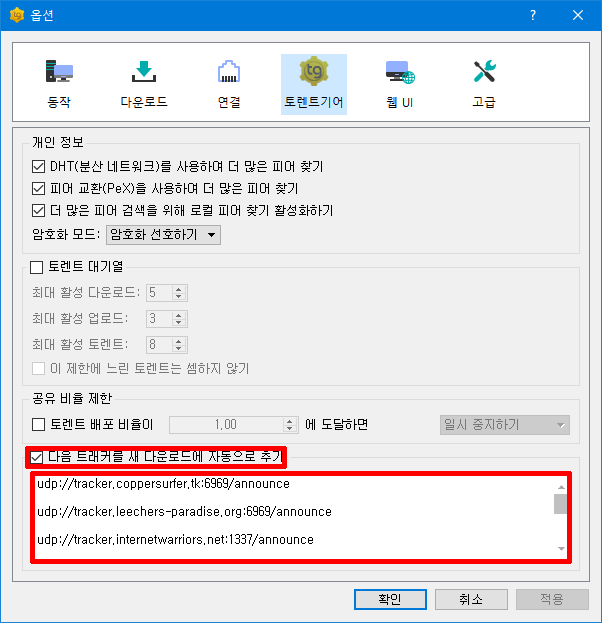 토렌트 최신 트래커를 자동으로 추가하는 방법 입니다.