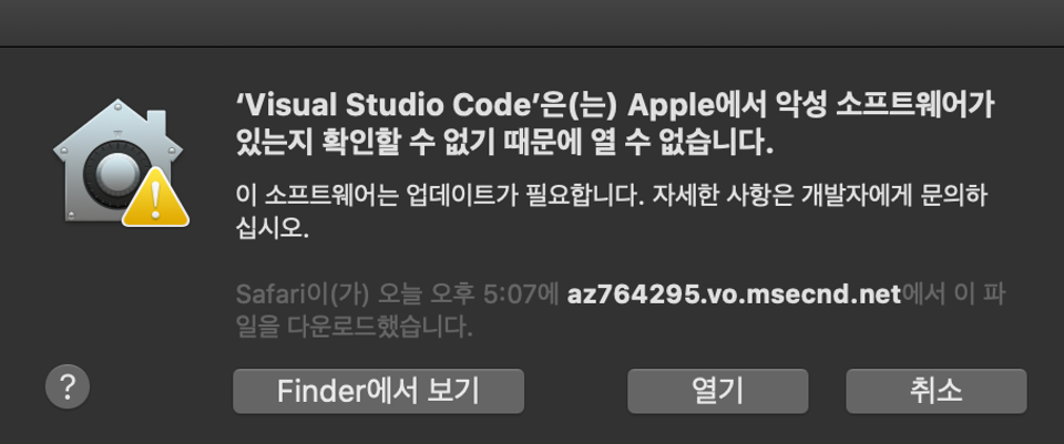 위와 같은 메시지가 뜹니다. [Finder에서 보기]를 클릭합니다.