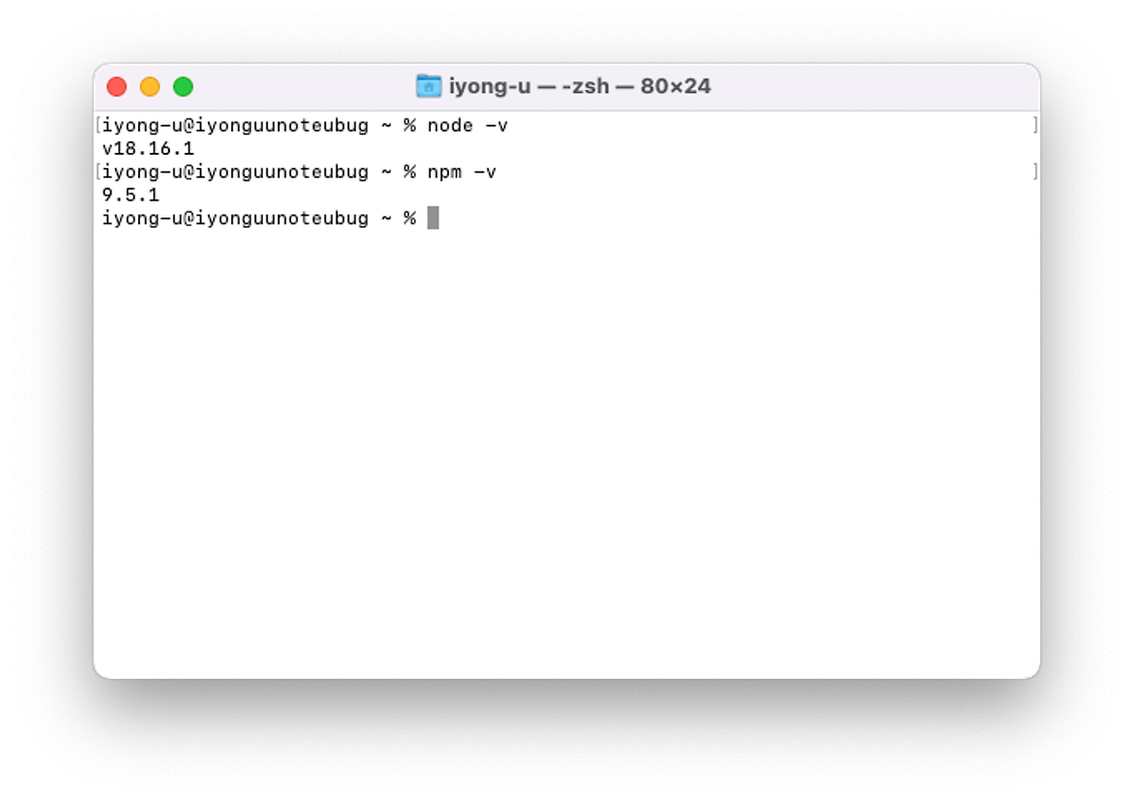 # 설치 되어있는 npm (Node Package Manager)의 버전을 조회합니다.
