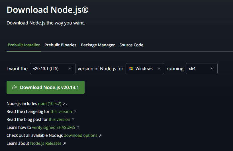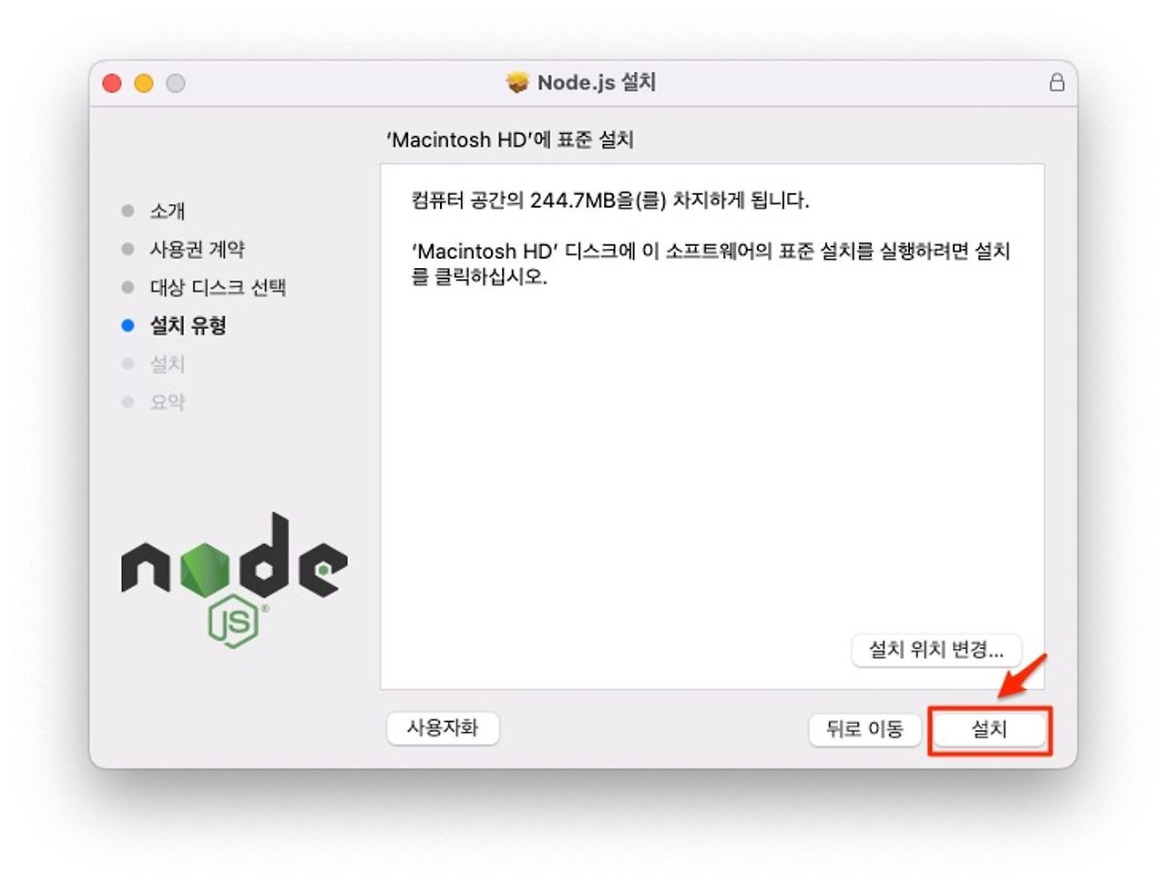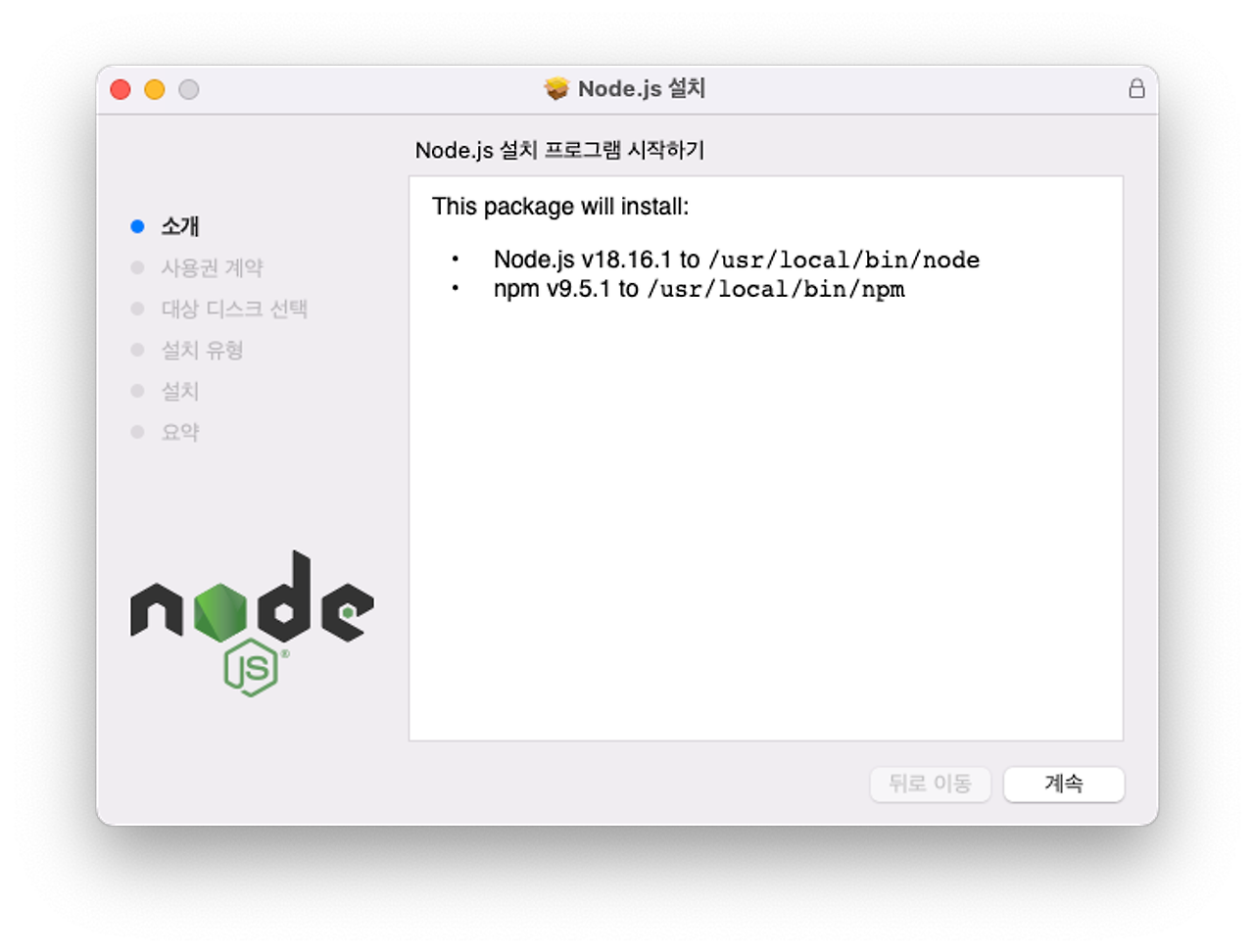 # 설치 되어있는 Node.js의 버전을 조회합니다.