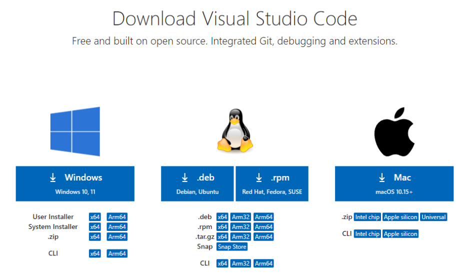 VS Code 와 마찬가지로, 자신이 사용하는 운영체제와 아키텍처에 맞게 다운로드 한다.