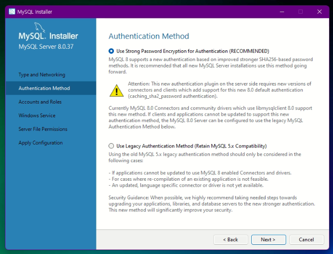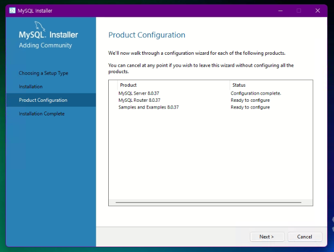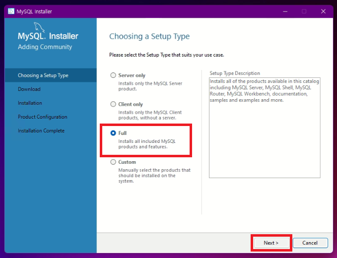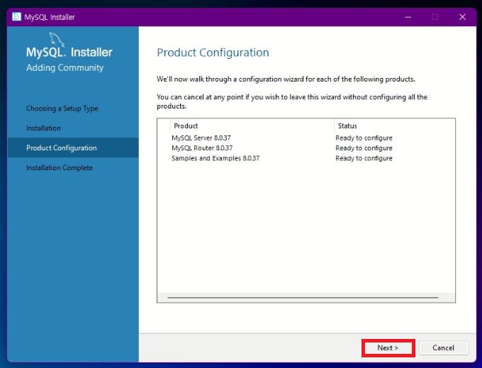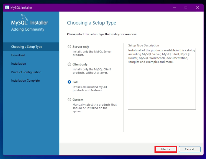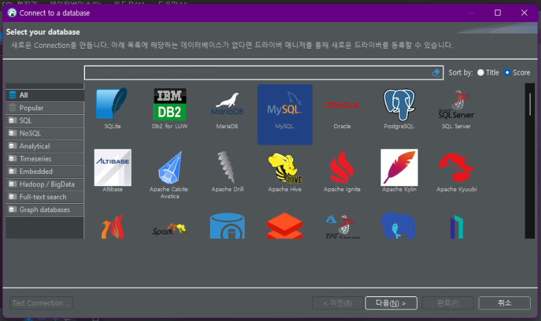 MySQL 을 누른후 다음 클릭