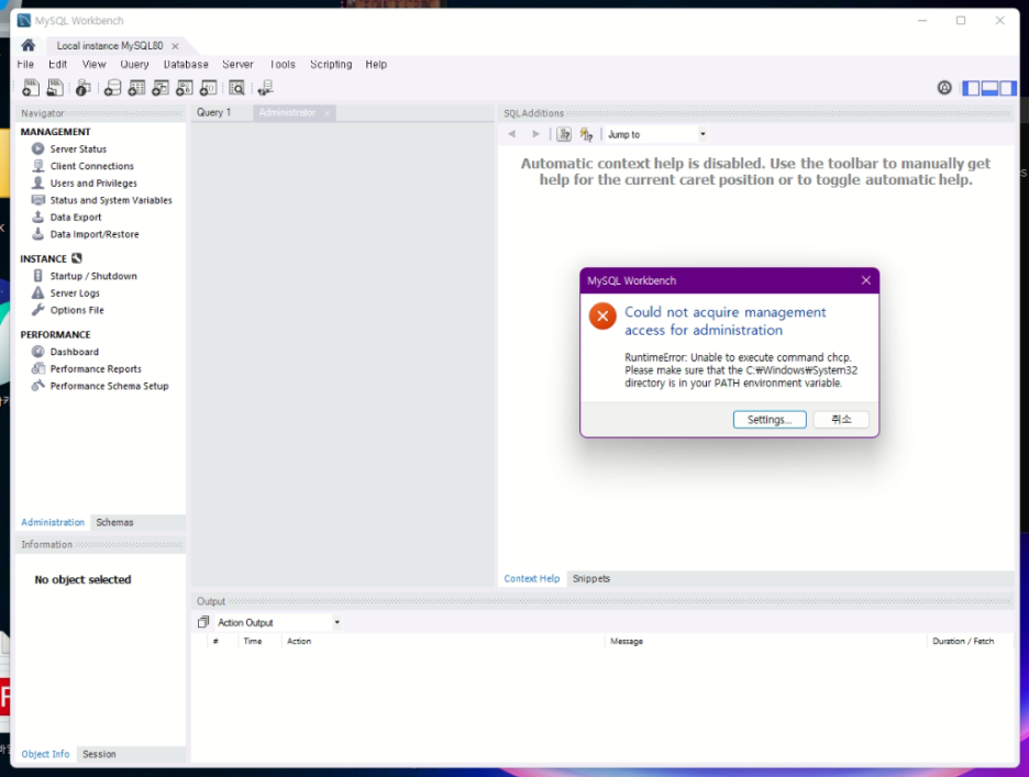 DB에 접속은 되었지만, 로케일 변경이 필요하다.