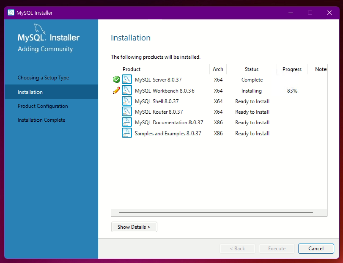 설치가 완료되었다, 가끔 설치에서 에러가 날때가 있는데 다시 Execute 를 해주면 된다. Next 클릭