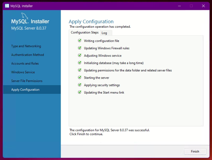 Finish 클릭