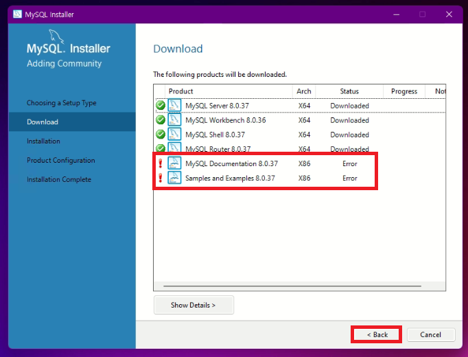 가끔 에러가 뜨기도 하는데, Back을 클릭