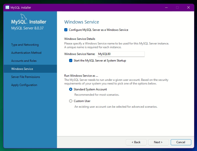 여기서 MySQL80 클릭해보자.