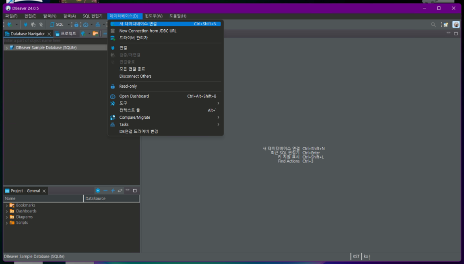 데이터베이스 > 새 데이터베이스 연결 클릭