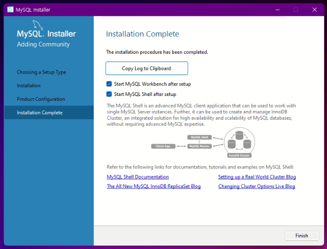 설치완료, Finish 클릭
