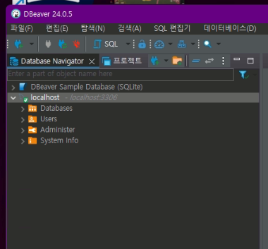 드라이버가 설치된 후, 다시 localhost 데이터베이스를 클릭하면 잘 나오는 것을 확인할 수있다.