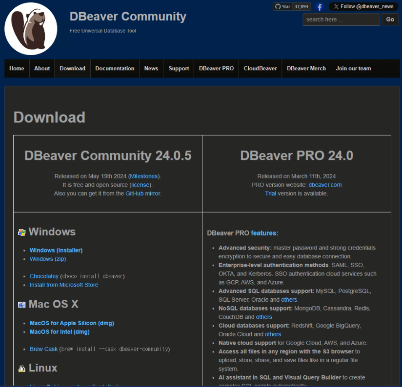 다음은 DB를 보기위해 DBeaver를 설치하자.