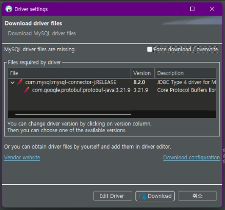 드라이버를 설치 하라고 나온다, Download 클릭