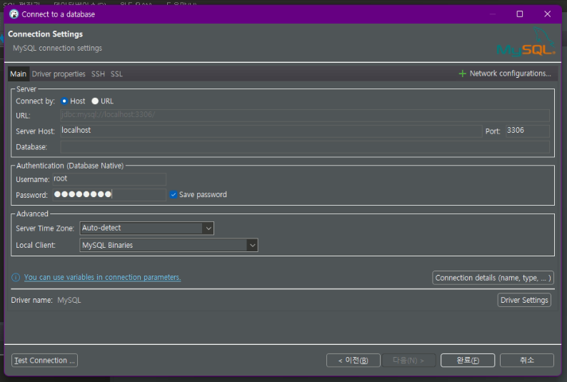 root 비밀번호 입력 후 완료 클릭