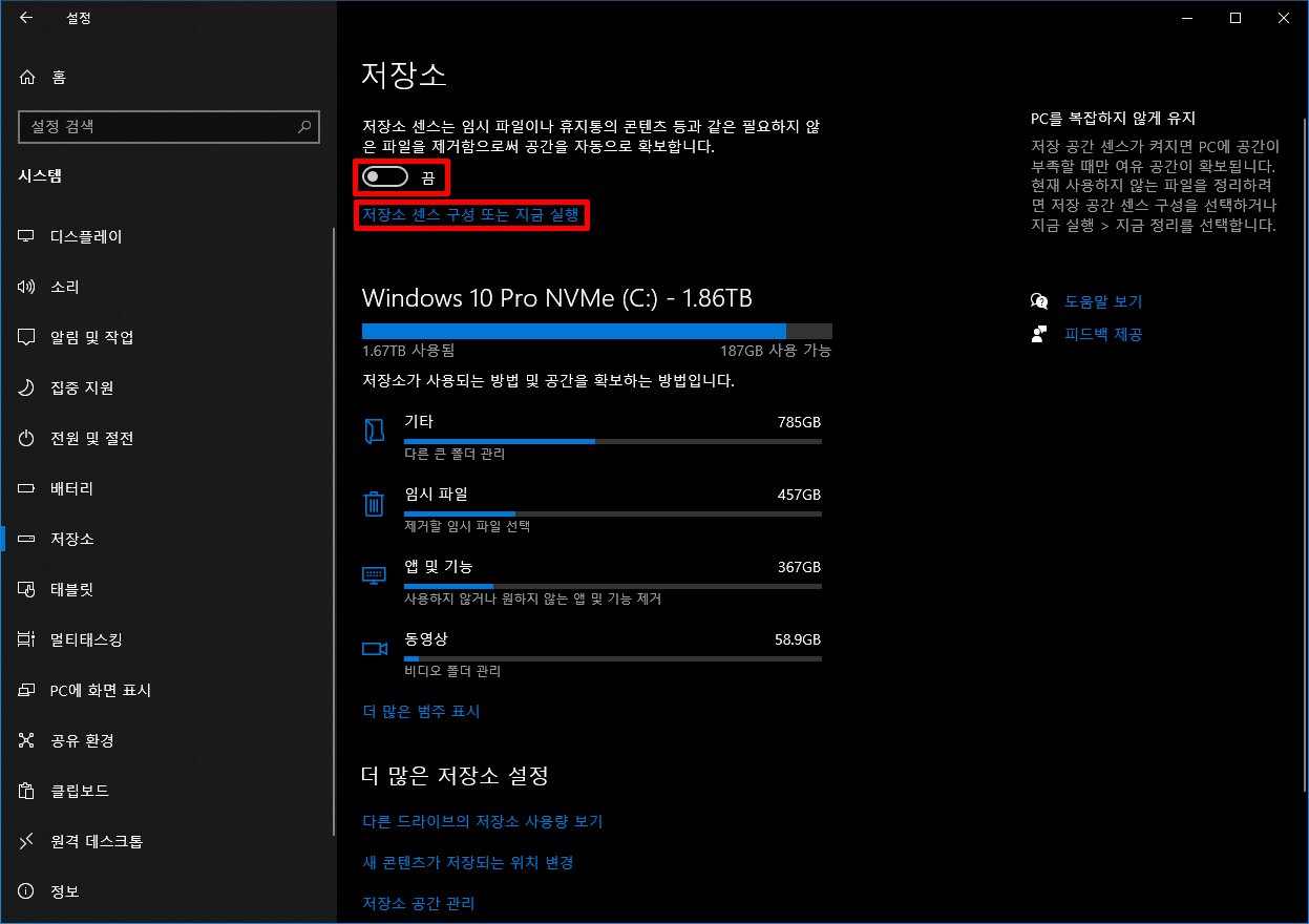 용량이 적은 SSD / HDD를 사용하는 사용자라면 언제나 저장공간 부족이 될까봐 항상 신경쓰고 관리를 하는데, 이러한 관리를 조금더 편하게 자동으로 해주는 기능을 소개합니다.