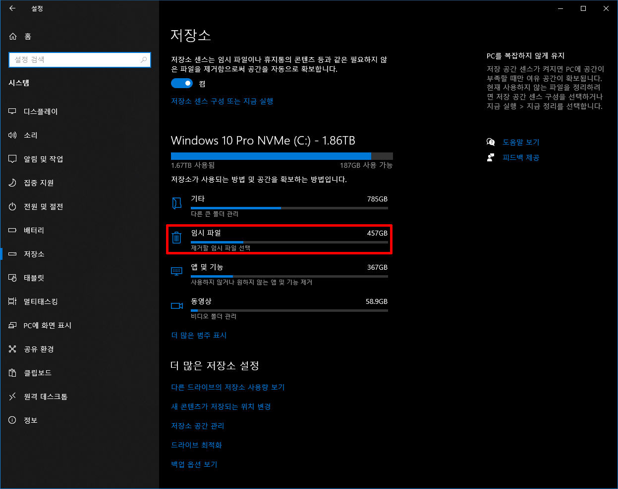 | 윈도우10 저장공간 자동으로 확보하기 - 저장소 센스 (0) | 2020.07.27 |