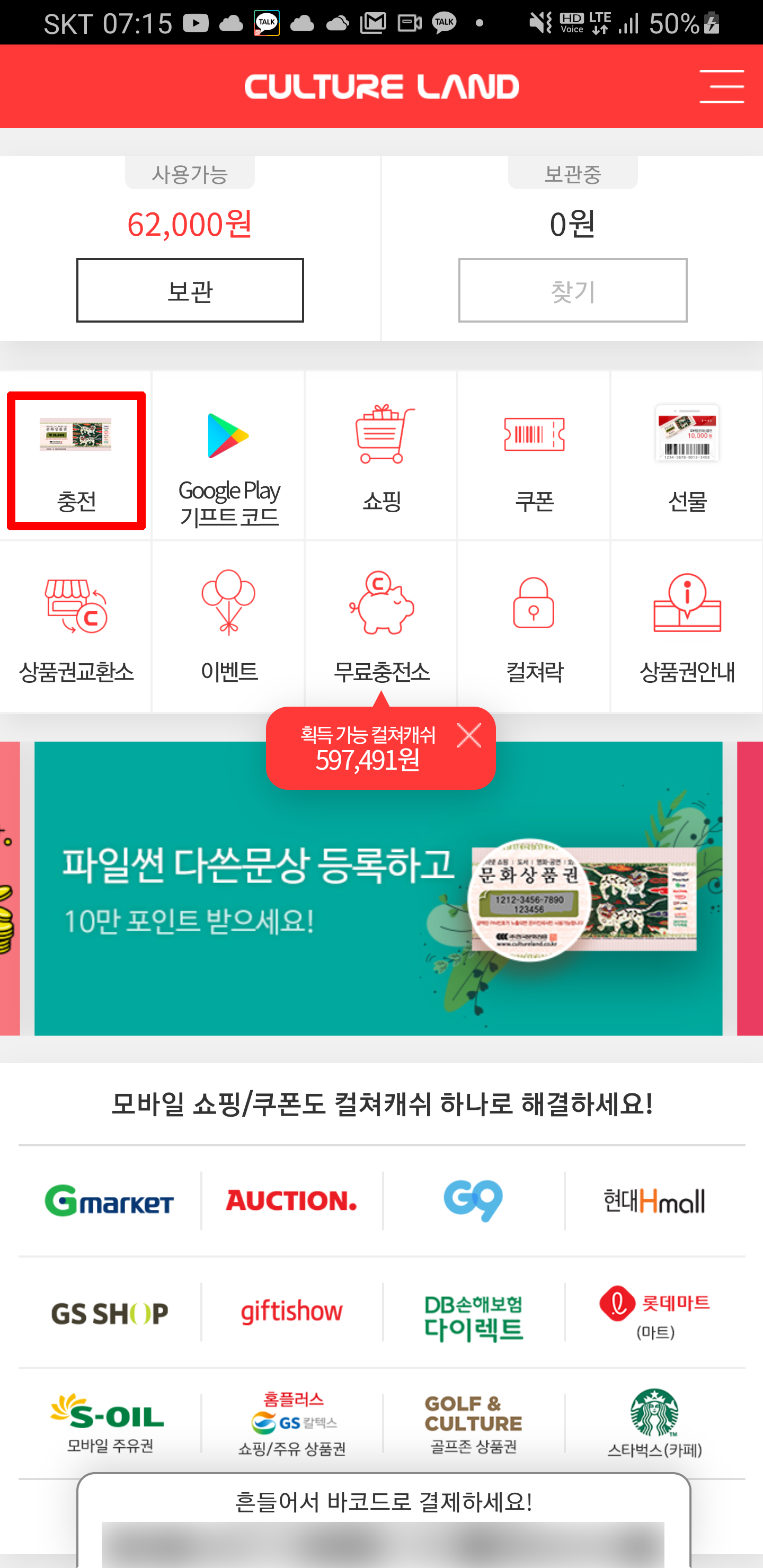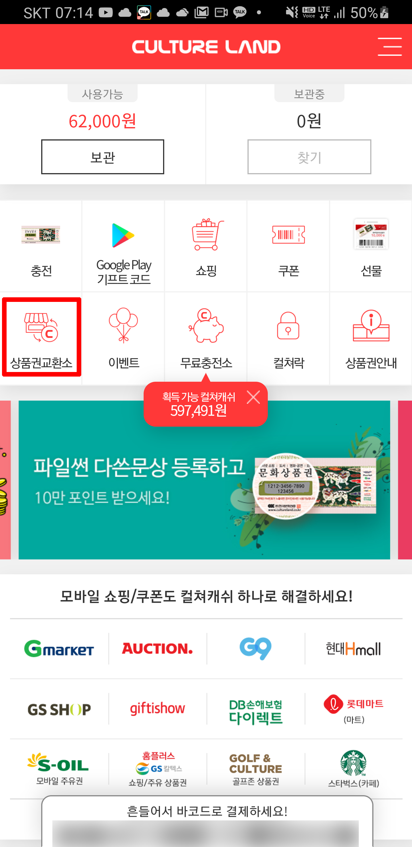 컬쳐랜드 상품권을 사용하는 방법은 여러가지인데 그중에 컬쳐캐쉬로 교환하여 네이버페이 포인트 / 스마일페이 포인트 등으로 교환하기 위한 방법을 추가합니다.
