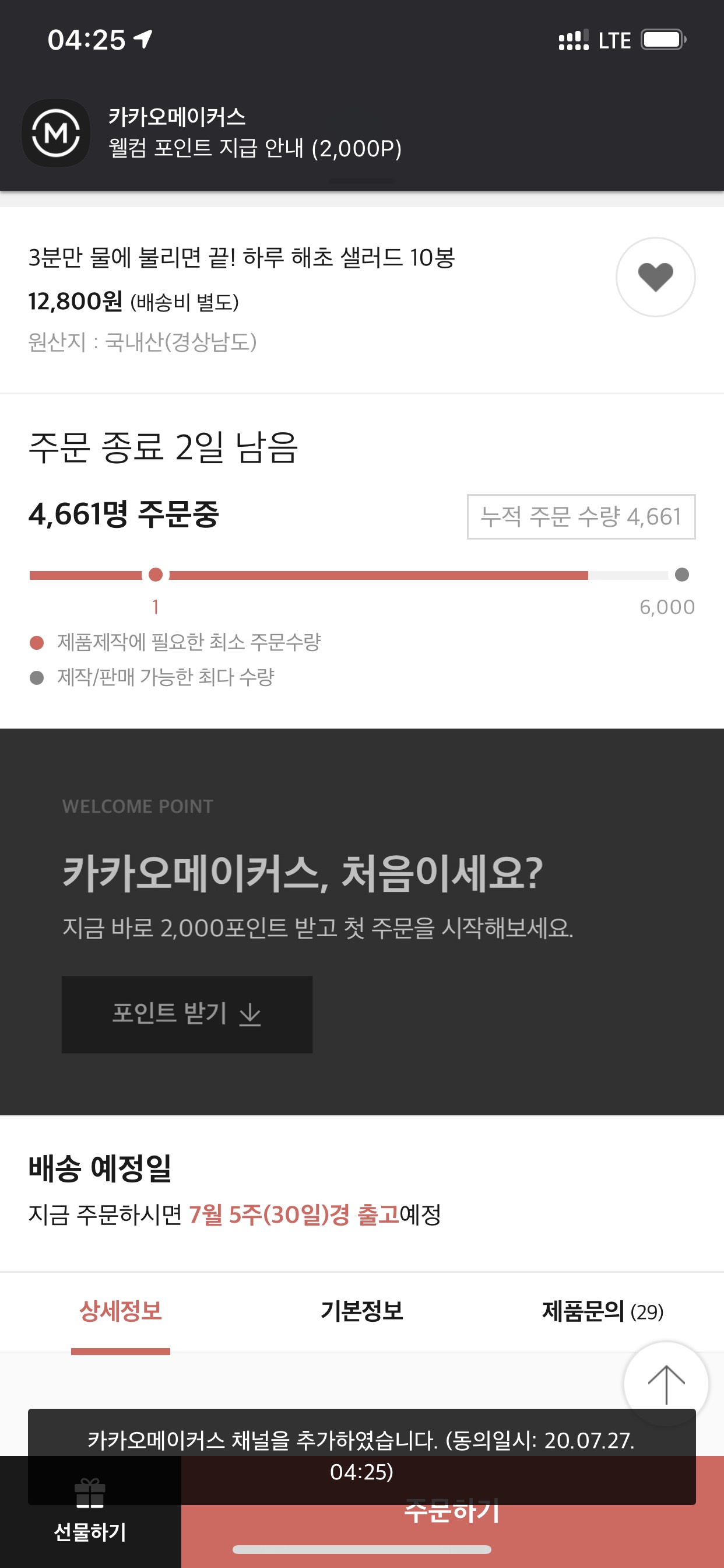 카카오톡 X 메이커스 콜라보 이벤트로 카카오 쇼핑포인트 2,000원을 무료로 주고 있습니다.