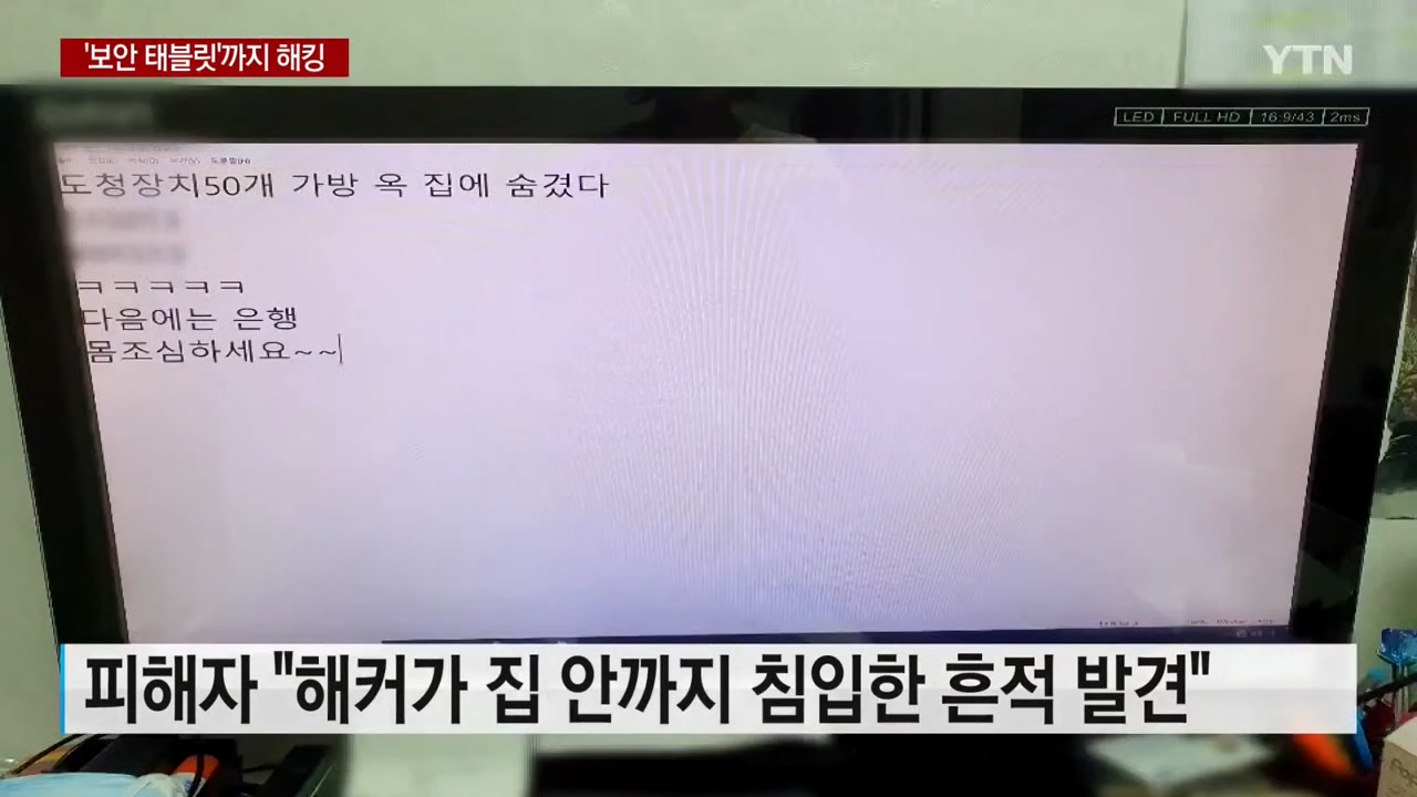 인터넷을 끊었는데도 한 가정집의 컴퓨터를 원격 조종해 개인정보를 빼내 협박한다는 해킹 사건, 보도해 드렸는데요, 피해자 신고를 받은 경찰이 현장 조사까지 벌였지만, 해커는 "경찰은 나를 알 수 없다"고 조롱하며 위협을 계속하고 있습니다.