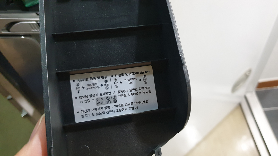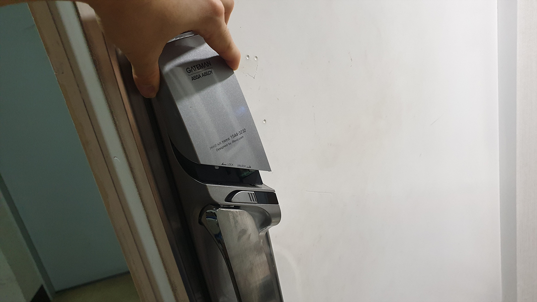 이제 카드 등록을 하기위해 디지털 도어록의 덮개를 열어야 합니다.