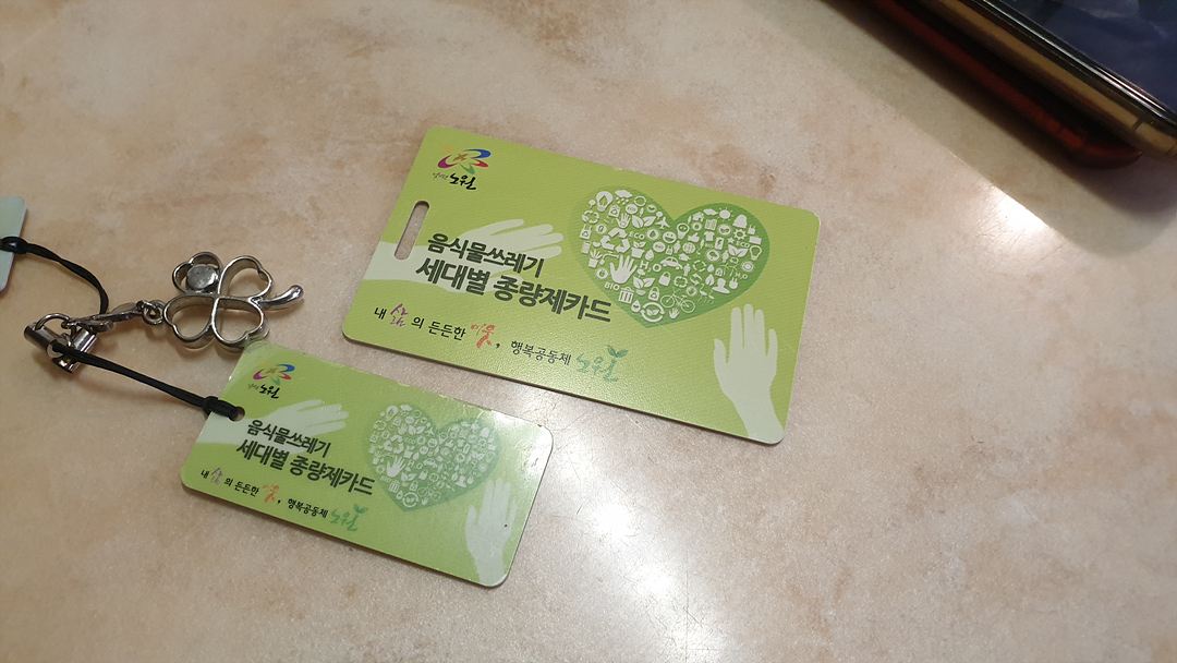 음식물쓰레기 종량제 카드도 마찬가지로 NFC RFID 방식이라서 사용할 수 있습니다.