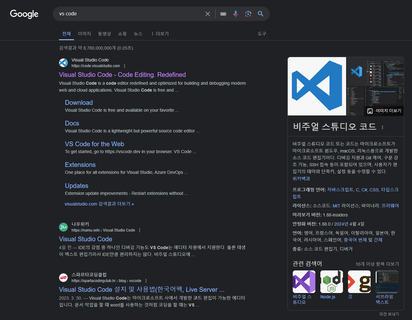 | Node.js 설치하기 및 VS Code 에서 확인 (노드.js 설치하기) (0) | 2024.04.23 |