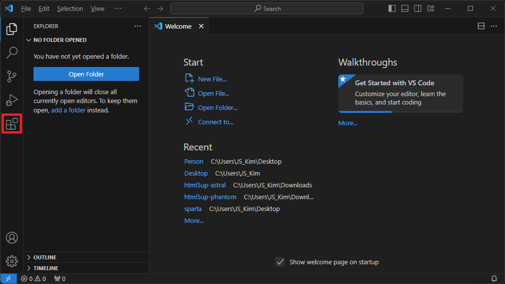 이제 유용한 익스텐션(확장 프로그램)을 설치해보자