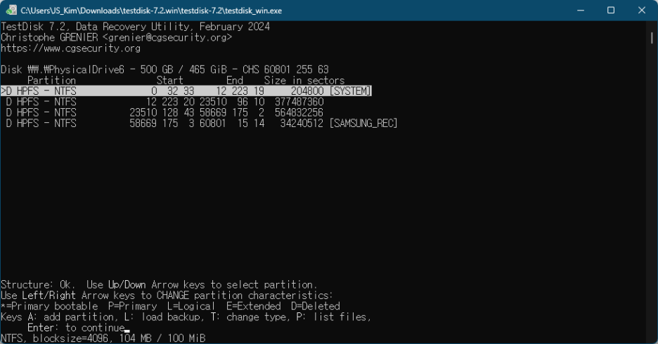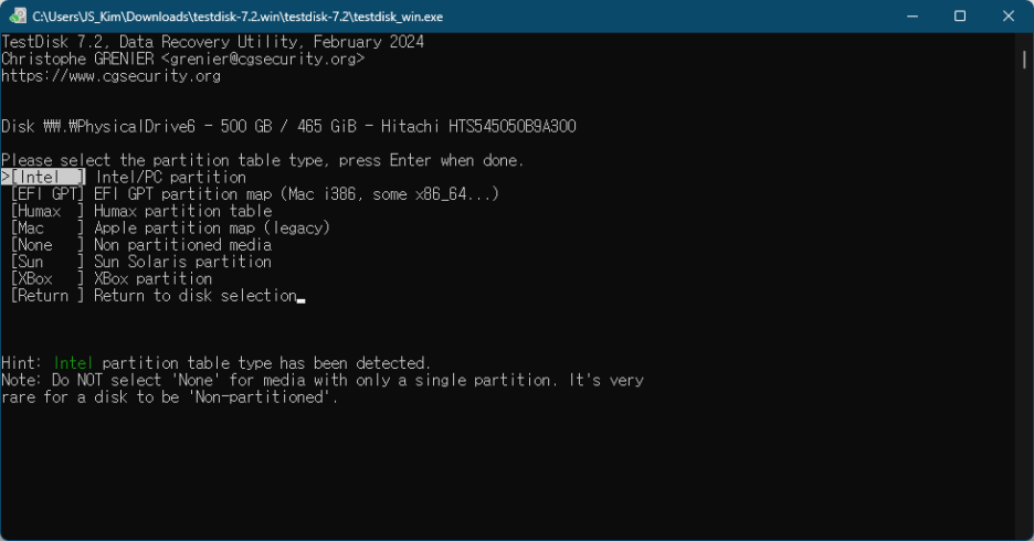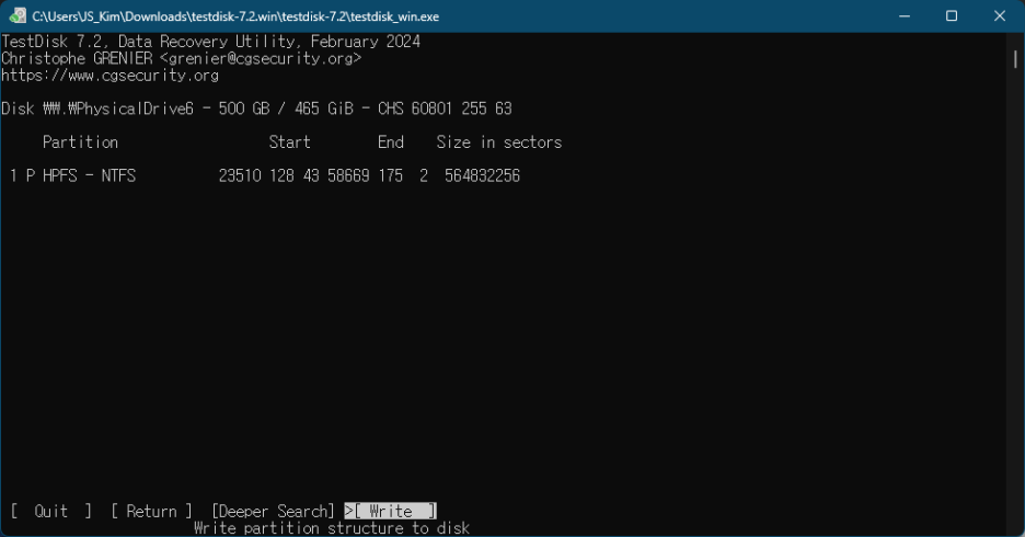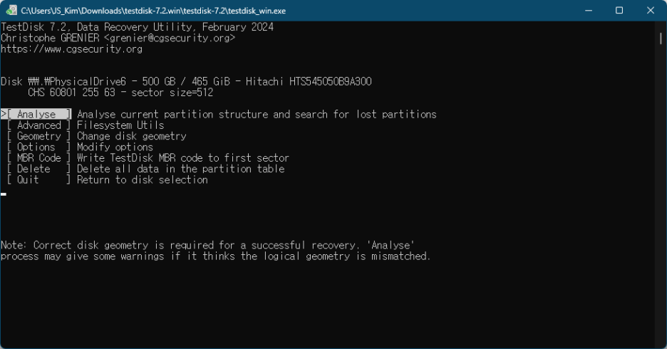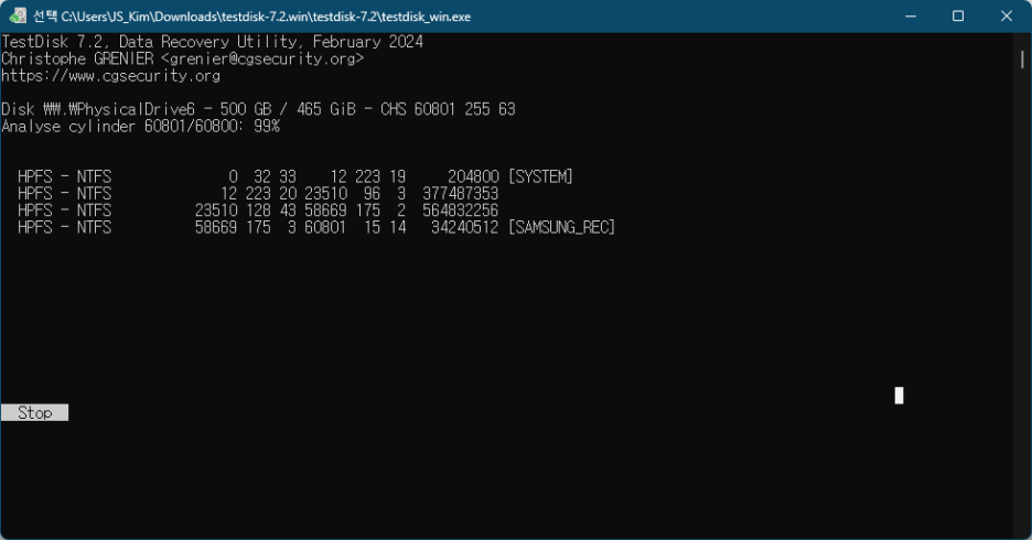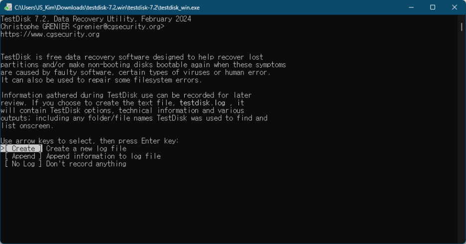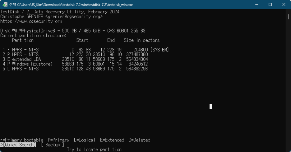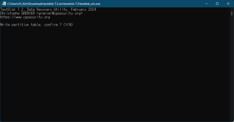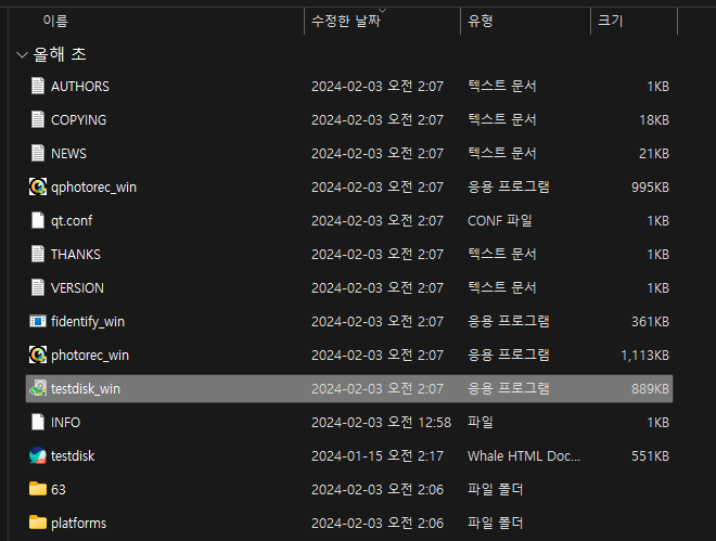 ▲ 압축을 풀어 testdisk_win 을 실행해주세요.