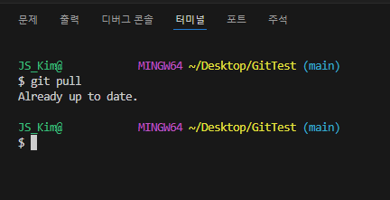 ▲ 이제 팀원이 프로젝트를 업데이트 하였을 경우, 당겨오는 방법은 아래 명령어를 사용한다
