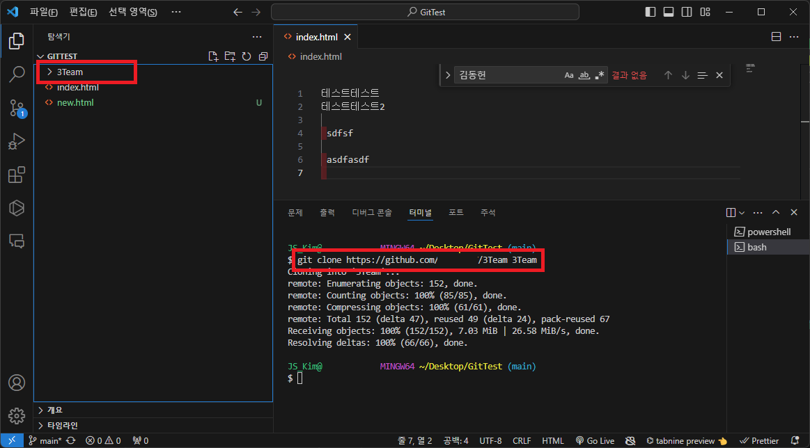 그러면, 왼쪽 파일탐색기에 팀 프로젝트 폴더가 짠 하고 생성된다.