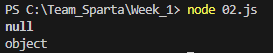 또한 undefined와는 다르게 사용되며 둘의 차이점은 undefined는 값이 정의되지 않은 값을 의미하고, null은 개발자가 의도적으로 값이 없다는 것을 표현한 것이다.