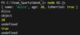 console.log(person); // { name: 'Alice', age: 20, isMarried: true }