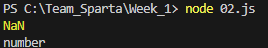 num1 변수에 따옴표와 함께 "Hello" / 2를 할당 후 로그를 찍어보면 NaN이 출력되며