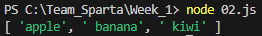 배열 형태인 ["apple", " banana", " kiwi"] 가 출력된다.