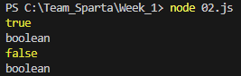 bool2 변수에 false를 할당 후 로그를 찍어보면 false가 출력되며