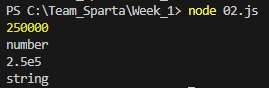 num2 변수에 따옴표와 함께 2.5e5를 할당 후 로그를 찍어보면 2.5e5가 출력되며