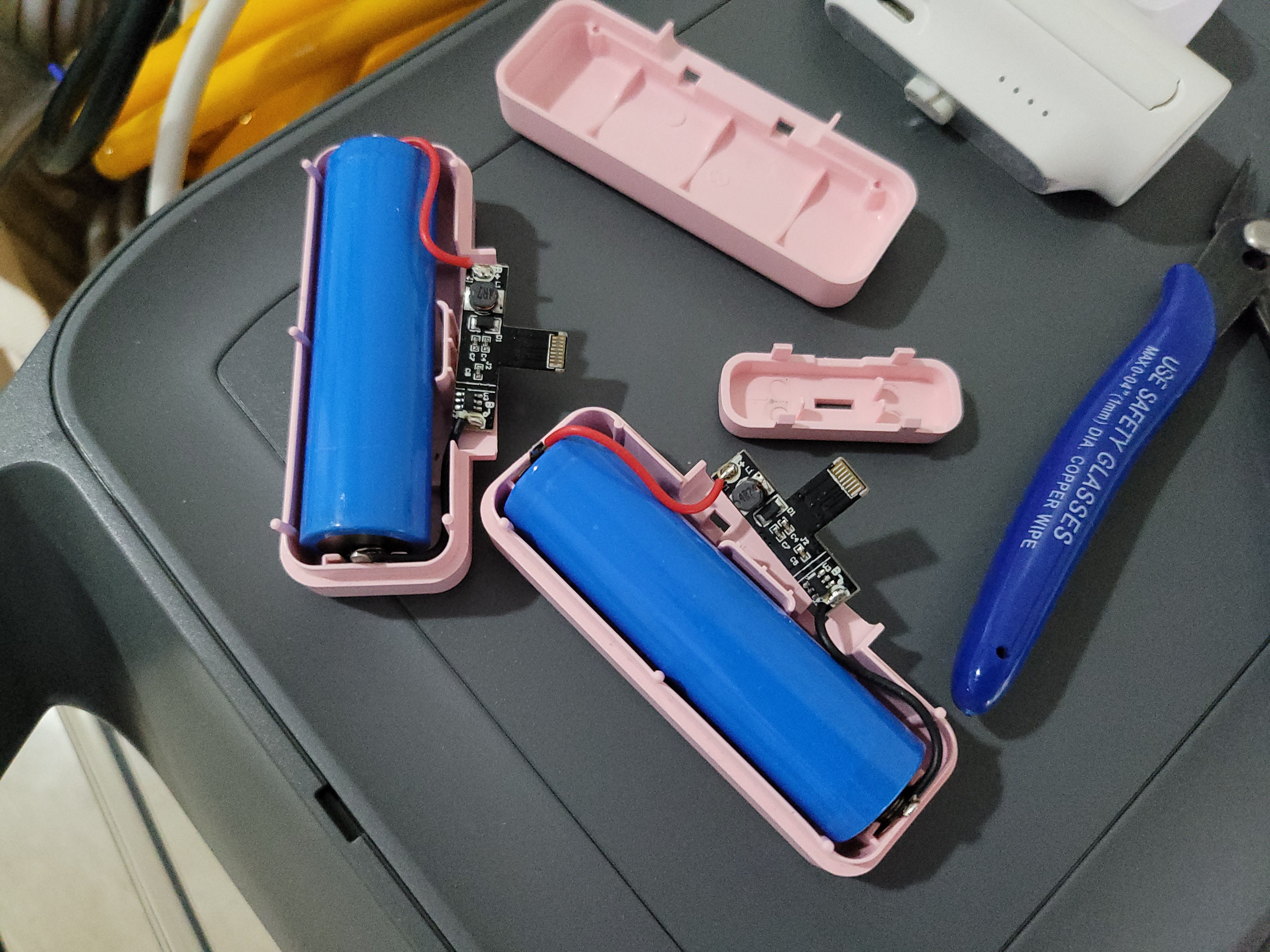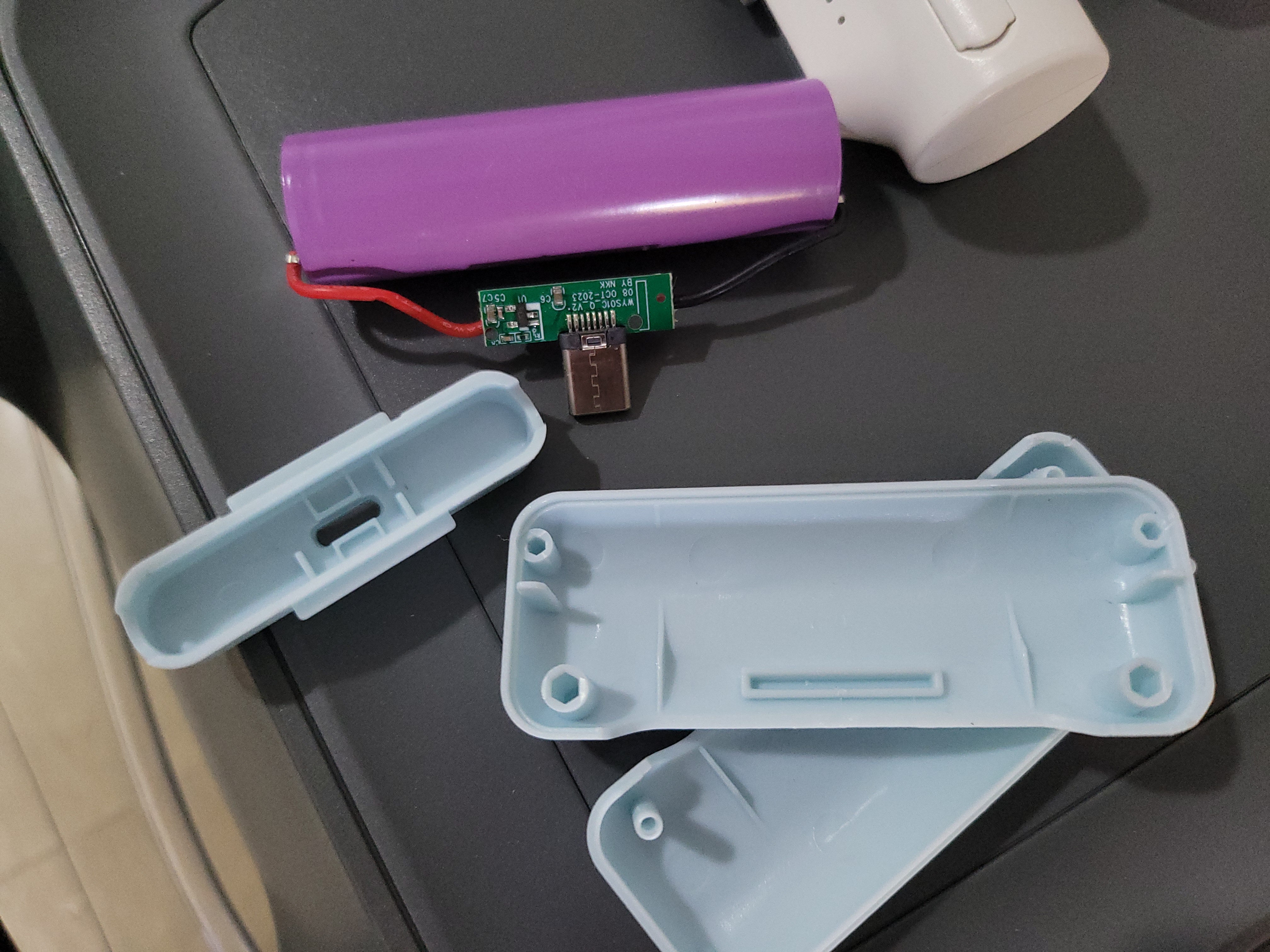 ▲ 일회용 보조배터리는 수거 후 재활용이 용이하도록 초음파 융착 / 접착 / 나사 고정 등의 방법은 사용되지 않고 끼워맞물림 으로 하우징 결합이 되어 있습니다.