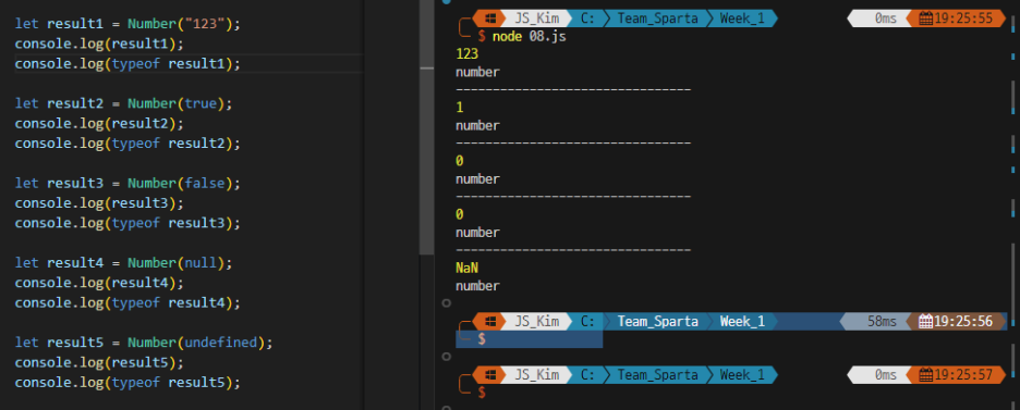 true 를 넣고 출력을 하자, 숫자로 변환되어 1 이 출력되었다.