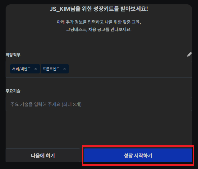 ▲ 고럼 또 회원가입 화면이 나오는데, 프로그래머스 에서 사용할 닉네임을 정하는 과정이다.